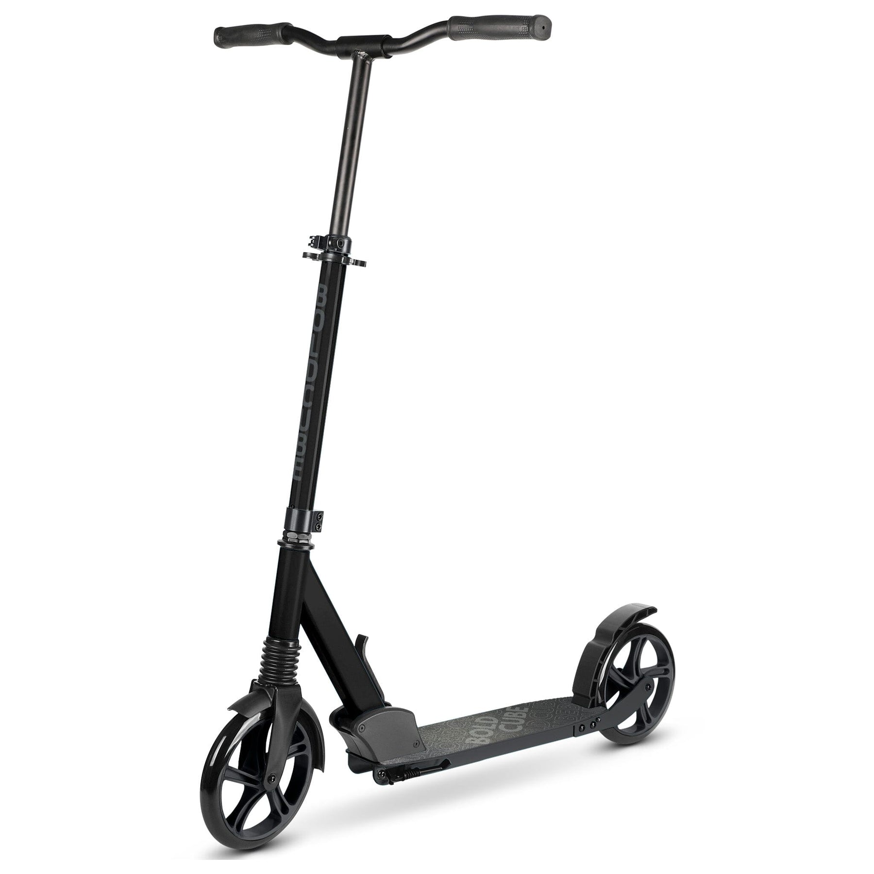 The BOLDCUBE Big 2 Wheel Scooter offers a smooth ride with its durable 200mm wheels and front-wheel suspension, making it perfect for both kids and adults looking for a reliable, enjoyable commute.